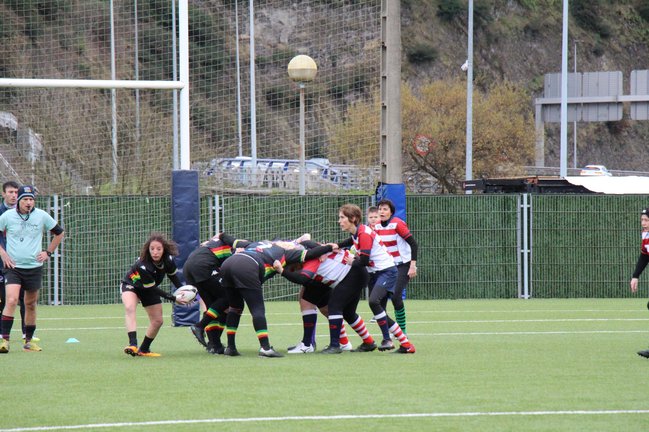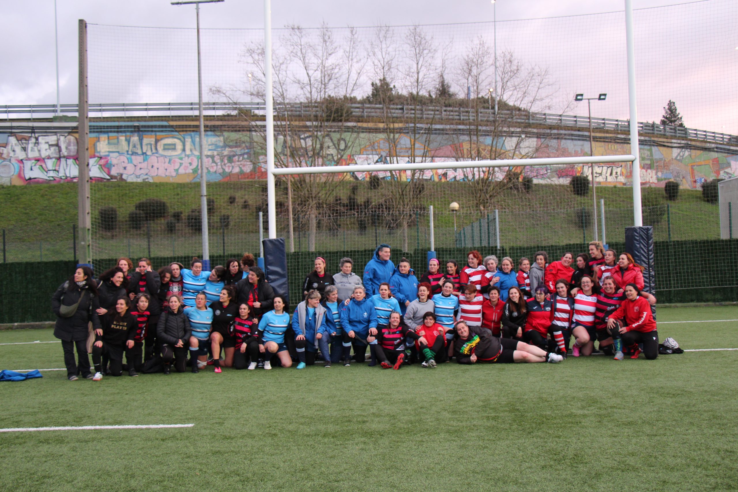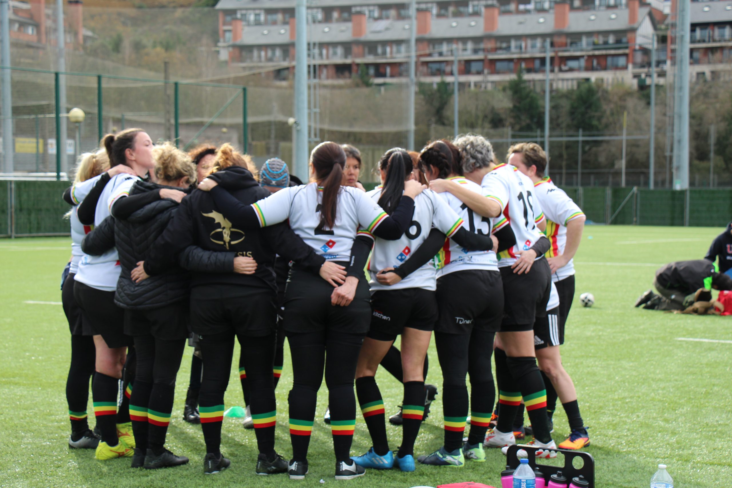 Este pasado fin de semana en Bilbao se ha vivido un akelarre de los que hacen historia. Nos llamaron desde las tierras del norte y no dudamos ni un segundo en apuntarnos al plan de rugby y pintxo pote por las calles de la bonita ciudad de Bilbao. Allí fuimos, un buen equipo de veteranas, jugadoras de competición, jugadoras en desarrollo y otras tantas en formación, novatas de las que aún de camino hacia el campo se repasan mentalmente el ruck, contra ruck, la touch, el maul…si al leer esto has tenido que buscar lo que es el maul, es que aún estás en formación. Tranquila, podrás decir «mol» en cuanto lo practiques solo una vez, porque el empuje de una contraria te haga entenderlo bien. Lo importante es que tú no eres tú, eres tu equipo empujando contigo. Y aquí, descubres algo precioso y de lo que Bacu habla mucho antes de salir al campo : «queremos continuidad, continuidad, continuidad…». Porque si algo tiene el rugby, es que cuando lo conoces, te enamoras de él irremediablemente. Así que la continuidad queda asegurada, llueva, truene o nieve, como un buen amor. Fuertes y con experiencia, las veteranas nos infunden su respeto al arte de sincronizar jugadas en el campo, mientras que las que estamos en formación aprendemos que hay que luchar, por nosotras, pero sobre todo por ellas: seremos la continuidad que ellas han luchado antes, partido a partido. Nuestra Pilongo nos miraba desde la banda, junto con Angie, Rosa, Person y Siri, ¡No íbamos a defraudar a nadie!Empezamos decididas a arrasar como las dragonas que somos y las de Sorginak lo descubrieron pronto. Continuidad y un equilibrio entre la técnica de las que más saben y las ganas de avanzar de las demás compañeras. Entre un juego limpio, control del balón y mucho disfrute, se fueron sucediendo los partidos. Dejamos a las Leonas sorprendidas con nuestra garra en el campo, tras aquel encuentro ya pasado en León. Pero no todo iba a ser felicidad. De pronto, un crujido paralizó a nuestra Cano. Sin embargo, íbamos a descubrir que a Cano no hay quién la pare. Con su sonrisa de oreja a oreja y una fuerza que no se puede fingir, salió del campo como la reina que es: bajo la admiración y el aplauso de todos los presentes. ¡Esa Cano, como mola, se merece una olaaaa!