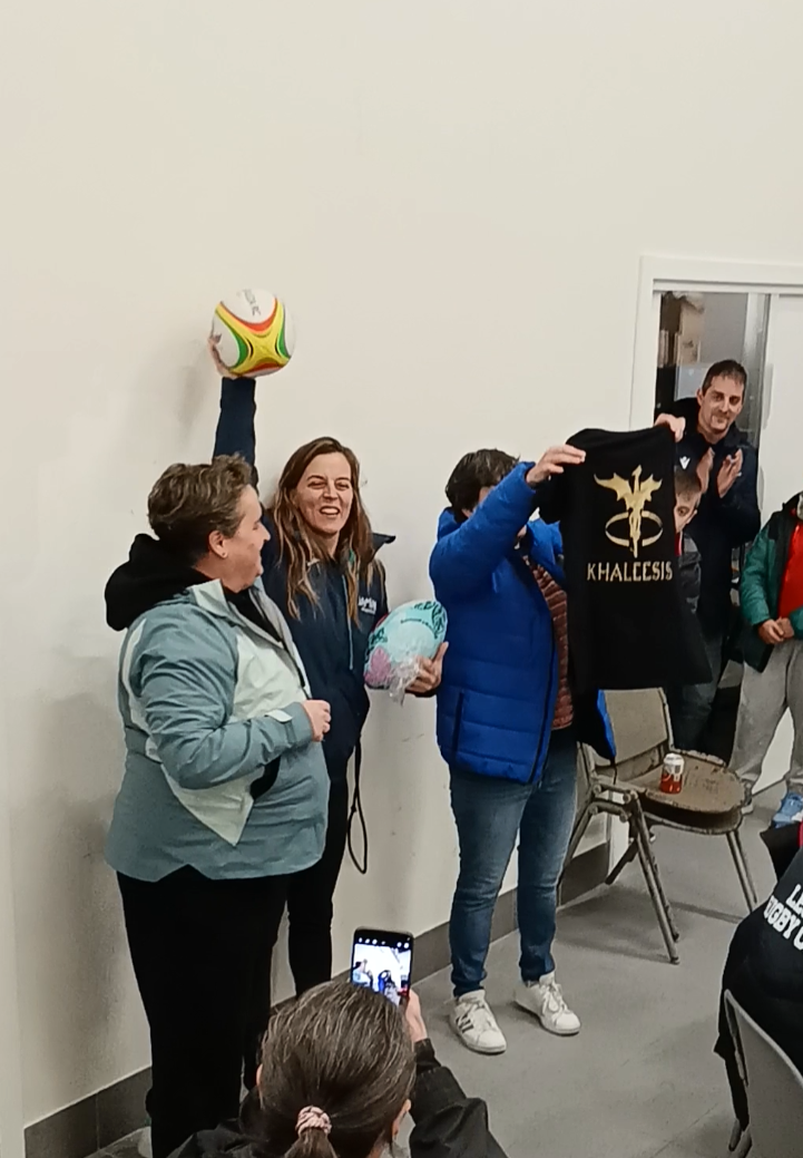 Antzarrak y Lamiak siguieron manteniendo a las Khaleesis activas, con el cuerpo y la mente en el campo, pero con una parte de nuestro corazón puesto en Cano y sus cuidadoras.Canija nos decía «vamos, todas juntitas» y nuestra Capi Cuca nos enseñaba su codo hecho pelota con una gran sonrisa. ¿Cómo no vamos a seguir a este mujerón de Cuca allá a donde vaya? Cualquiera mata por estar en su do,en su re y en su fa. Inés arrasando, Esther placando, Tabú disfrutando, Eder y Caroline fuertes y lanzadas a por todas, Repi volando por el campo,Novi entregada al juego, Sueca avanzando sin miedo y Soto ensayando. Mientras a Sofi se le cruzaba algún que otro encontronazo paquetil, Eli repartía a las contrarias con su fuego dragonil. Bacu nos ayudó a enfocarnos fuera y dentro del campo mientras Cani organizaba el movimiento del balón. Damien y Santi, contenidos y orgullosos, iban disfrutando de nuestra progresión. Javi, desde la distancia, nos enviaba su apoyo. Todo terminó bajo la lluvia, con el orgullo y la alegría de haber llegado al final juntas. Tras las duchas y un tercer tiempo picante, fuimos a por el cuarto tiempo por las calles de Bilbao. Un conductor de autobús quiso llevarse a nuestra Sofi, pero no le dejamos. Tocaba celebrar juntas las victorias, el compañerismo, el encuentro con nuestras amigas de los demás equipos y la fiesta del rugby. Y allá que fuimos, a comernos y bebernos la ciudad. Y hasta aquí la crónica de este fin de semana de Akelarre en Bilbao, ¡pero no lo duden! habrá continuidad. Nos vemos en el campo, Khaleesis.
